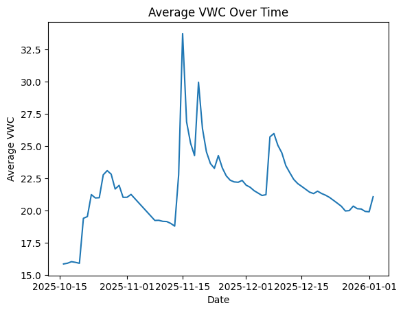 At the start, VWC was a bit low. This is to be expected as the ground still needs to compact around the sensor and some air pockets remain causing lower readings. A couple of days of significant rainfall starting around October 20th helped.