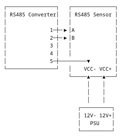 The device requires a 3.6 ~ 30V power supply. Since I have 12V available this will be no issue. It communicates using the Modbus protocol over RS-485. This is new territory for my weather station setup. I have always avoided this unknown and opted for analog alternatives like 4-20mA current loops or voltage signals when not using easy-to-use breakout boards like the MAX31865 and sensors like the SHT3x. The latter has so many public libraries that integrate easily that I never even have to consider how it actually communicates.